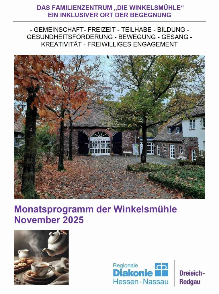 zum morgigen Start des Monats November, senden wir Ihnen und Euch das neue Programm der Winkelsmühle, mit aktuellen Informationen und Terminen zu den Angeboten und Veranstaltungen im Familienzentrum.
