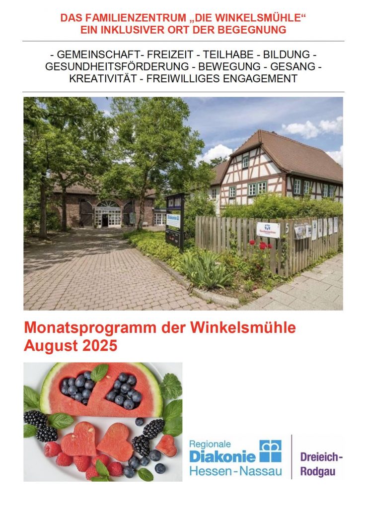 zum heutigen Start des Monats August, senden wir Ihnen und Euch das neue Programm der Winkelsmühle, mit aktuellen Informationen und Terminen zu den Angeboten und Veranstaltungen im Familienzentrum.