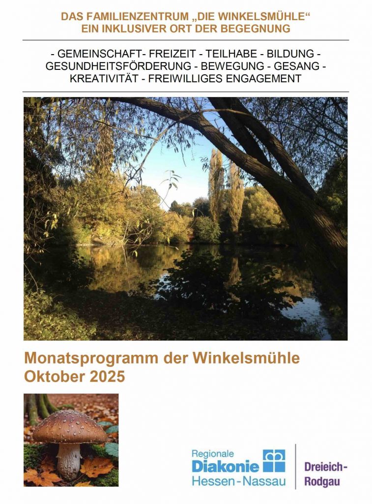 zum Start des Monats Oktober nächsten Mittwoch, senden wir Ihnen und Euch das neue Programm der Winkelsmühle, mit aktuellen Informationen und Terminen zu den Angeboten und Veranstaltungen im Familienzentrum.