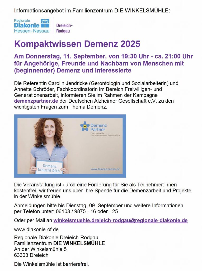 – Kompaktwissen Demenz am Donnerstag, 11. September, von 19:30 – ca. 21:00 Uhr