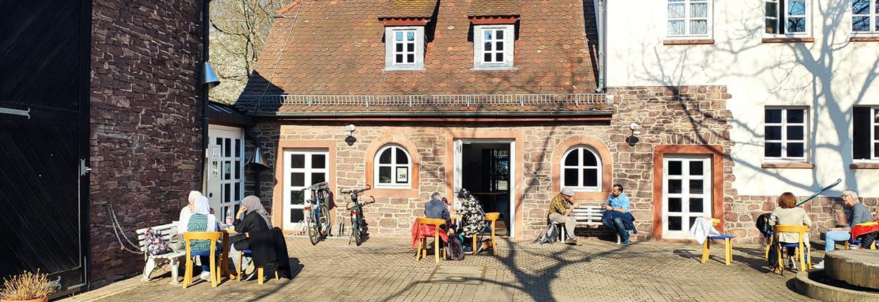 In der WINKELSMÜHLE stehen hierfür mehrere Räume, und im Sommer zusätzlich der Garten zur Verfügung, in denen sich Tandems oder auch Kleingruppen in Ruhe zurückziehen und Konversation betreiben können. Meist findet die Konversation 1:1 statt, es kann aber auch sinnvoll sein, mal in kleineren Gruppen (zu zweit oder zu dritt) an einem Tisch zu lernen. Das ermöglich auch das Gespräch in deutscher Sprache unter den Geflüchteten. Bei den Geflüchteten handelt es sich meist um Menschen, die schon länger im Lande sind. Einige verfügen bereits über gute Deutschkenntnisse und möchten sich auf eine Prüfung oder auf ein Vorstellungsgespräch vorbereiten. Der überwiegende Anteil an „Lernwilligen“ sind jedoch noch Anfänger und benötigen Übung in der alltäglichen Konversation.